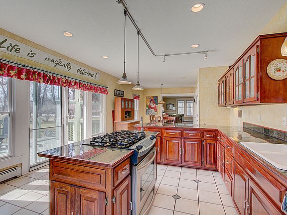 Looking for a country feel but a home that has easy access to freeway, lakes, bike path, schools and shopping? Here it is!!! Charming home with all the modern day conveniences! Big porch w/walls of windows welcomes you.Foyer has custom copper rail to 2nd floor. Open floor plan w/spacious Liv Rm w/NFP opens to BIG KIT w/dinette & patio doors open to AMAZING deck w/outdoor built-in grill area. Home office has separate entrance for the business owner. HWF's & newer windows thru out. Retreat to the Master BR w/private balcony, walk-through closet & private bath w/jetted soaking tub. Lower Level has Fam Rm w/FP, workshop,craft rm, full BA. Exterior is so pretty w/gardens, outdoor sink, 2.5 car garage w/walk-up storage & oversized shed. Check out 3D tour too!