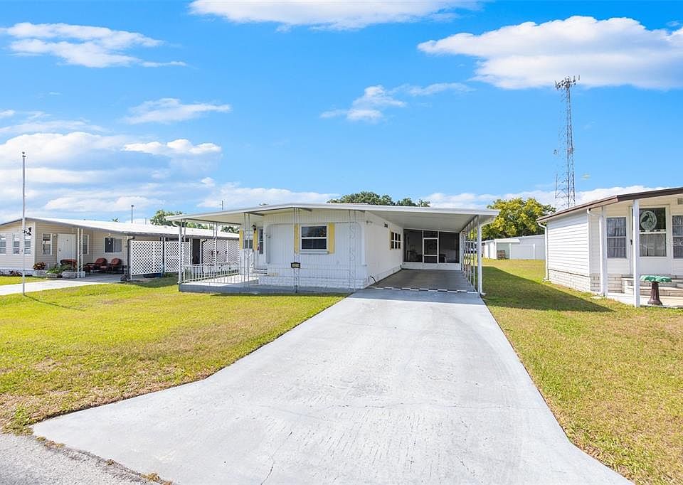 Charming 2 Bed, 2 Bath Mobile Home in Zephyr Shores! Welcome to this vibrant 55+ community in Zephyrhills, You own your own land here no need to worry about escalating lot rent. This meticulously maintained mobile home offers the perfect blend of comfort and convenience. Step inside this wonderful home and discover laminate flooring throughout, creating a seamless flow from room to room. The kitchen is equipped with appliances including a sleek smooth-top range with a built-in microwave, and refrigerator. Not only does it come with these appliances it has the perfect little built in with a storage cabinet perfect for extra items or utensils that are not frequently used. The open living room accommodates both living and dining area, perfect for a small dinette, and ideal for entertaining guests. Enjoy the privacy of a split bedroom layout, with the master bedroom featuring an en-suite bathroom with a shower, and the guest bathroom boasting a tub and shower combo. Relax and unwind in the inviting Florida room this is a great area to play cards, put together puzzles maybe extra space for entertaining or housing guest when you need more room. A large covered carport offers protection for your vehicle, and a screen room just off the kitchen where you can sit and relax after a long day or a place to enjoy your morning coffee! Just off of the screened room you will notice a nice storage shed where the washer and dryer are housed, and there is a small work are for anyone that would like a place to tinker or have a hobby that requires a workshop area. Experience retired life living with community amenities such as a clubhouse hosting various activities, a sparkling pool, and shuffleboard courts. Don't miss the opportunity to explore the serene pond complete with a boat dock.