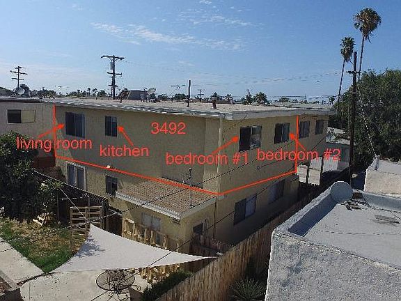 Completely remodeled large 750 sq. ft. 2-bedroom/1-bath apartment in Normal Heights steps from Adams Avenue. Upstairs unit with views of Normal Heights. Located in the middle of a quiet 4-unit complex, in a triplex building behind a house. Unit has gated access both from Monroe Avenue and from alley. Wood floor, kitchen remodeled with new cabinetry, stainless steel appliances including dishwasher, remodeled bath with tile floor, coin-op washer/dryer in community laundry room, one extra long parking spot in carport, storage unit in carport. Tenant pays gas/electric, landlord pays water/sewer/trash. Qualified tenants to have least 3X rent in VERIFIABLE gross income, pass credit/background check, no prior evictions. No smoking, no pets, 2 adults max. $1,000 security deposit. Call/text either Ken 858-531-2332 (owner) or Jerel 661-435-6513 (on-site manager) to arrange a viewing! Available September 2nd.