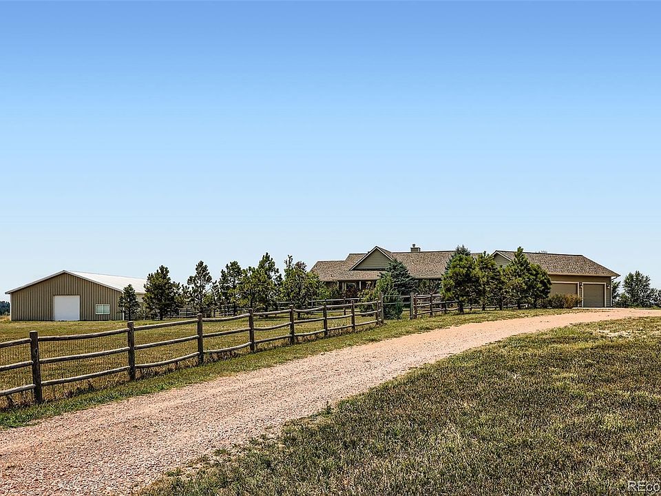 Welcome to this beautifully updated property in the Willownook Ranch Subdivision that sits on approx. **35 Acres** of peaceful Colorado Countryside. A fully covered patio greets you as you enter this awesome ranch style home. Once inside, you'll find all the quality finishes that also includes-fresh interior paint on main level, in the Kitchen you have brand new granite countertops with stainless appliances plus all-new carpeting upstairs. The Primary Suite has his and her dual sinks and has walk large walk in Closet. The second bedroom on the main level features its own private bath—perfect for your guests! Another great feature is the Main Floor Office/Den. Entering from the Garage you have a huge mud room/laundry room. You can enjoy year-round comfort with a Brand New Furnace and Central A/C that was just installed and comes with all the Factory Warranty and Installation Warranty. The finished walk out basement includes a wine room and a very nice sized wet bar, which will be ideal for entertaining guests or cozy family nights. This home boasts soaring ceilings and expansive floor-to-ceiling windows in the living room that flood the home with natural light and frame **Breathtaking Panoramic Views** of your acreage. Outside, You can find a very expansive deck to relax after a long hard day work and watch spectacular Colorado sunsets. The backyard is fully fenced. All professionally landscaped. Pasture for Horses is fenced and ready to go. A rare blend of luxury, space, and country living! This Property has been very well cared for and maintained and it is only minutes into the Town of Elizabeth for all your shopping needs. Don't forget to Bring your Horses, Trailers, Camper, Boat, ATV's and all your outdoor toys cause they will all fit into the huge approx. 50x72 complete pull-through shop with oversized doors, concrete floor, 220V power, and water in the shop that is perfect for projects, or your livestock. This property offers it all and is your for the taking!