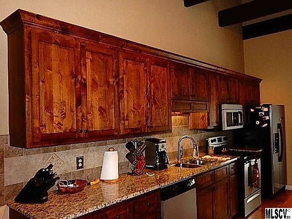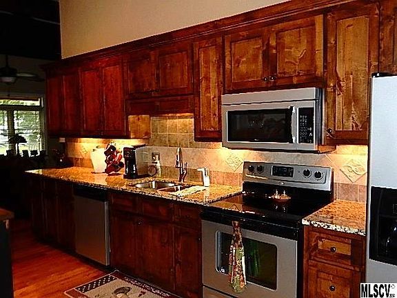 NEW CONDITION!! WELL PLANNED DREAM HOME. Storm damaged the house and it was practically rebuilt. NEW Metal Roof, floor joists, cabinets, appliances, Large Island w/stools & drawers for strg, wood floors, Paint, CP, Windows, Exterior Vinyl and more. Bleached white pine in one BR, Wormy Cherry in Master BR, Ceramic in Baths, EXTRA LG. CLOSETS.. Laundry Rm. beside the Kitchen, Rock Fireplace w/wood insert, Exposed Beams in Great Rm and in Master BR, French doors from Master BR and Din. Rm to Extra large Deck on back, Garden spot, Snow Guards on roof, Exterior lighting in shrubbery, Beautifully Landscaped, Strg. Bldg. MUST SEE INSIDE! Clean, Neat. House has Alarm system.