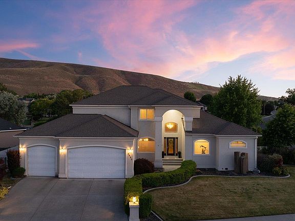 MLS# 284570 Welcome to this beautifully appointed 4-bedroom, 3-bath home located in a highly desirable South Richland neighborhood, just minutes from the Queensgate shopping area and convenient freeway access. Step through the grand entrance into a bright and airy foyer featuring soaring vaulted ceilings, a striking staircase, and elegant formal dining and living areas—perfect for entertaining. A dedicated office on the main floor provides an ideal space for remote work or study. The spacious main-floor primary suite is a true retreat, complete with a double-sided fireplace, spa-like ensuite bathroom, and a custom walk-in closet. The heart of the home is the open-concept kitchen and family room, where a cozy fireplace, eat-in dining area, built-in wine cellar, and ample counter space—including a built-in desk—make everyday living both functional and inviting. Upstairs, you'll find three generously sized bedrooms and a full bathroom, providing space and privacy for family or guests. Situated on a beautifully landscaped 1/3-acre lot, the backyard is your private oasis. Enjoy summer days on the expansive covered patio or by the in-ground pool, surrounded by serene pond views and professionally designed landscaping featuring rare basalt columns. Recent updates include a brand-new HVAC system installed in 2025, ensuring comfort and efficiency for years to come.Don’t miss this rare opportunity to own a luxurious and well-maintained home in one of Richland’s most sought-after locations.