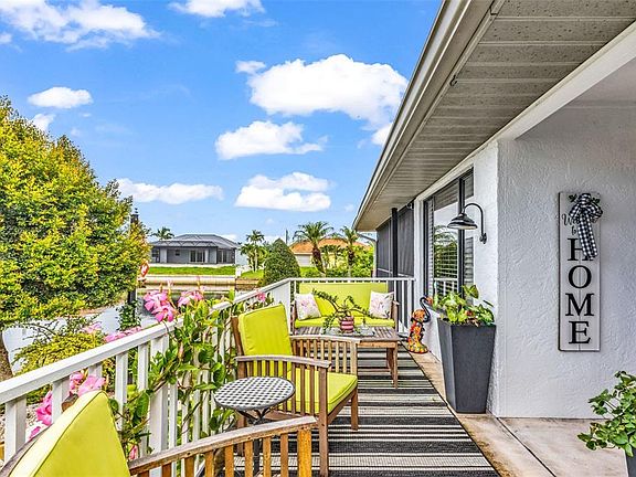 This one-of-a-kind 3-bedroom, 3-bathroom waterfront home in the desirable Harbour Heights community is designed to maximize its stunning canal and Peace River views. Situated on a corner lot with 200 feet of saltwater canal frontage, a concrete seawall, and private dock, the home captures the water from the moment you step through the front door, creating a truly unique setting for Florida living. The open great room and dining area provide plenty of natural light and flexible living space. The kitchen features abundant counter space, a center island, glass tile backsplash, stainless vent hood, and built-in microwave. The primary suite offers a walk-in closet and sliding doors that open to an office/bonus room with panoramic river views. Two guest bedrooms also feature private baths—one with its own entrance that is perfect for visitors or extended family, and also presents an excellent income opportunity as a private rental suite. An indoor laundry room with built-in shelving adds convenience and functionality to daily living. Outdoor living shines with a wraparound porch, rear patio, and multiple areas for relaxing or entertaining. The front porch provides a serene spot overlooking the canal and views of the Peace River, while a welcoming front garden adds charm to the entry. In back, a private herb garden with a French drain creates a peaceful retreat and a touch of sustainability. The property is enhanced with Bahama shutters for shade and storm protection. Here, you can enjoy the best of both worlds—the calm waters of the Peace River, ideal for kayaking, wildlife watching, and fishing for largemouth bass, catfish, snook, and tarpon, combined with direct passage through Charlotte Harbor to the Gulf of Mexico for world-class saltwater fishing, boating, and open-water adventures. Additional highlights include a new roof (2022), HVAC system (2025), two storage sheds, and a spacious 2-car garage. Located on a quiet dead-end street in a friendly neighborhood, this home combines peace and privacy with convenient access to downtown Punta Gorda, I-75, shopping, dining, and parks. With no HOA or CDD fees, this distinctive property offers a rare chance to enjoy the best of Florida’s waterfront lifestyle.