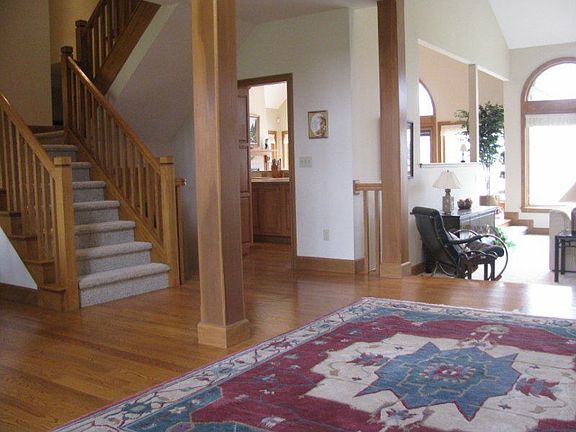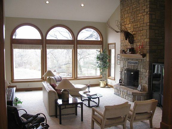Custom built with tons of amenties. 4.40 rolling acres w/mature trees. Wood floors, dream kitchen w/ Amish bult cabinets and Corian counter tops.Lots of windows, vaulted ceilings. 1st floor master w/loft & 2 walk-in closets. Full walk-out Lower Level, plumbed for kitchen and bath. 22x24 deck w/expanding awning. Additional detached garage w/walkup area for finishing.