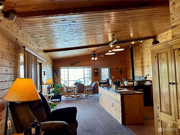 You'll love the views from this one of a kind property! Warm woods and tons of windows greet you when you walk in the door of this 2 bed, 2 bath home nicely situated on over 15 acres. The open concept living area with high ceilings lends a spacious feel. One of the best features of this home are the deep shady porches, perfect for enjoying the outdoors. An attached oversized garage and all of the outbuildings give you so many options to store all of your vehicles and toys. There is even a bonus room that can be used as a canning kitchen or meat processing room. Just a few minutes from Coulee City and Banks Lake which offers many recreational opportunities for boating, fishing and wildlife viewing. Don't wait on this special property!