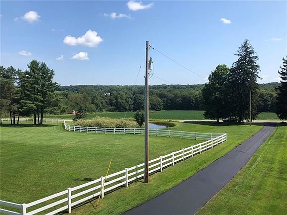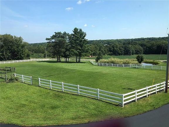 Country Paradise and what views! Farmette located on 7.5 acres with completely gutted 4 bedroom home. Laundry and full bath with claw foot tub on 1st floor. Beautiful kitchen with cherry cabinets and granite and stainless steel appliances. 31 x 5 front porch and also 31 x 5 balcony. Two car detached garage plus 4 car garage attached to the four stall barn. Chicken coop with electric and lights. There is a woodshed with wood stove. Two pastures with vinyl fencing and high tensile. Koi pond. New metal roof on house and new septic system. Paved driveway. Convenient to Routes 376, 79, 80, Grove City Outlet Mall, Grove City, Thiel, Westminster, and Slippery Rock Colleges.