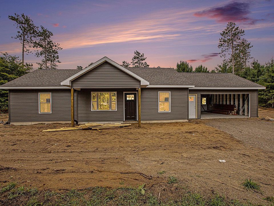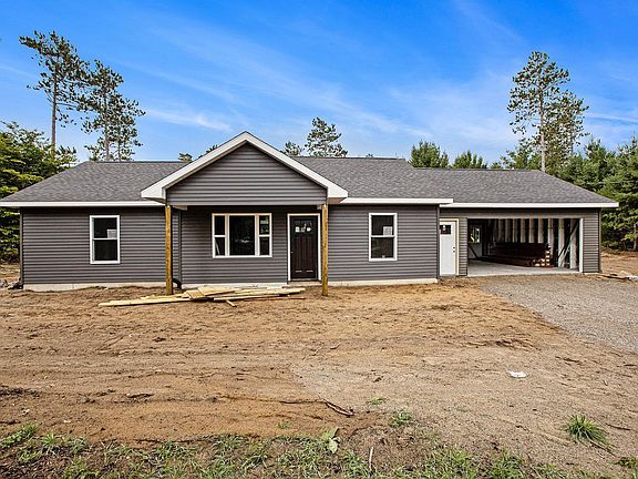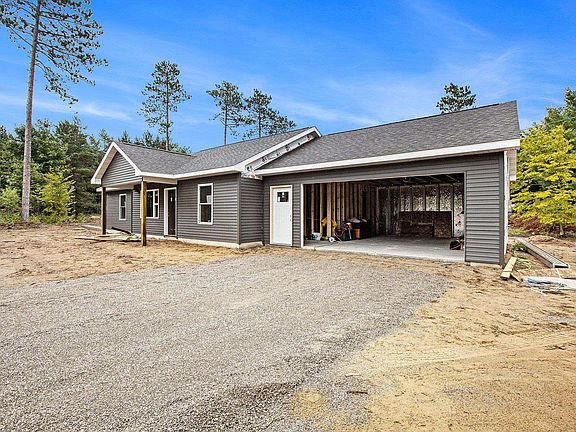 Under Construction Ranch at 3494 Gleaner Hall Rd, Kingsley, MI 49649 Discover a brand-new, 1,171 sq ft ranch-style home on a 2.5-acre lot in serene Kingsley, just south of Traverse City. Estimated completion is Nov 15, 2025. This 3-bed, 2-bath home features a 444 sq ft unfinished garage, built on a slab with durable concrete Superior Walls, vinyl siding, asphalt shingles, and vinyl windows. Energy-efficient with R-37 wall and R-50 ceiling insulation, it has a furnace with central A/C, on-demand water heater, well, septic, and electric/propane utilities (propane will be buyer-established). The layout offers a 222 sq ft living room, 146 sq ft kitchen with white cabinetry and laminate counters, 131 sq ft primary bedroom with 72 sq ft bath and 15 sq ft closet, plus two bedrooms (166 & 145 sq ft). Features carpet in bedrooms, luxury vinyl plank flooring elsewhere, and LED lights. No appliances included, but prepped for electric stove and fridge with water/ice hookup. Enjoy a 5x10 concrete front porch and a 10x20 concrete back patio, Construction is at rough-in framing, with siding due early Sept 2025. Customizations are possible before material orders (cabinets by 9/19/25), with minor cost increases. Earnest money buyers get walkthroughs and punch lists; otherwise, sold as-is with a 1-year warranty. Photos of similar spec homes showcase the builder’s quality. Come and see this durable, efficient home!