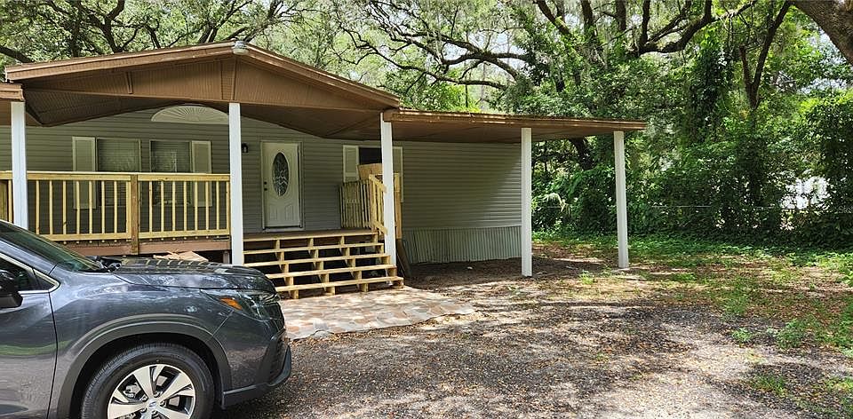 This cozy home sits on over 1 acre of a lot. There is NO HOA, corner lot with double entrance. Newley renovated, features 3 / 2 full baths, bath. Spectacular new kitchen with four large windows over seeing the backyard view. Natural lighting all throughout the kitchen, master bedroom and living room. Sky lights also have been installed in the kitchen. New appliances, recently installed gray laminated flooring, bathrooms have been updated. This home is surrounded by oak trees, country living at its finest. Large front porch. Small tiny home, located in the back yard. Borderline of Wesley Chapel and Zephyrhills. Close to shopping centers, restaurants minutes away from the Tampa premium outlets. Access to I 75 and 275.