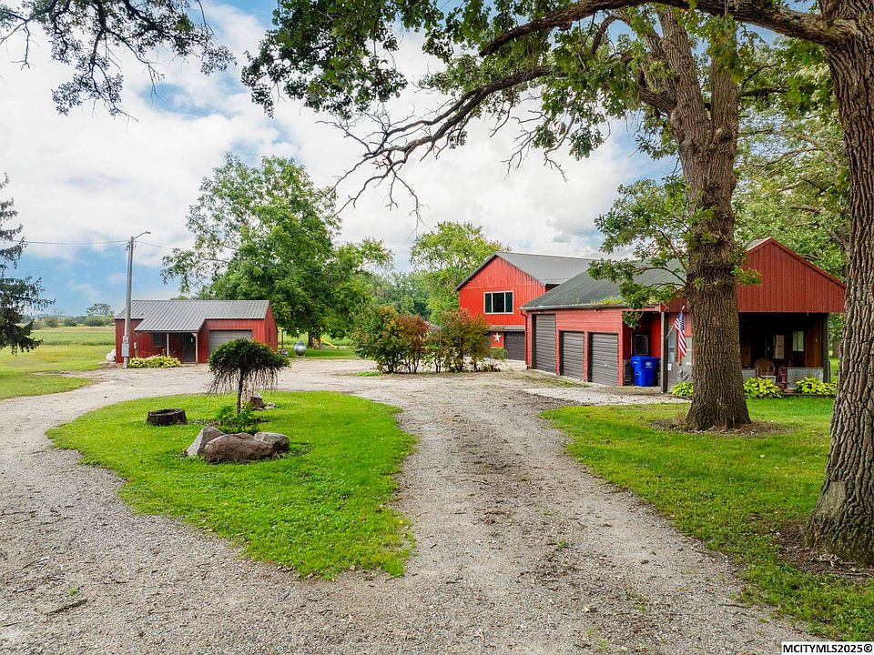 CUSTOM-BUILT AND DESIGNED TO IMPRESS - THIS UNIQUE SHOUSE OFFERS AN INCREDIBLE BLEND OF RUSTIC CHARM & MODERN CONVENIENCE. Set on 9.33 acres just outside Plymouth, the property includes an attached 2-stall garage, heated shop, barn, & a detached 3-stall garage—perfect for storage, hobbies, or business. Built to last with steel siding and roof, the home also features a spare staircase from the garage to the upper level, providing added functionality. Soaring 20' ceilings set the stage for a massive open-concept living area, anchored by a cook’s kitchen with an appliance suite &a walk-in pantry. The main floor hosts the primary en-suite & laundry, complemented by 2 additional bedrooms & 1/2 bath upstairs. A spacious family room upstairs overlooks the main level, adding even more versatile living space. Two concrete patios, a brand-new gazebo, an improved swingset, & solar panels enhance both lifestyle and efficiency. This is country living reimagined—schedule your private showing today!