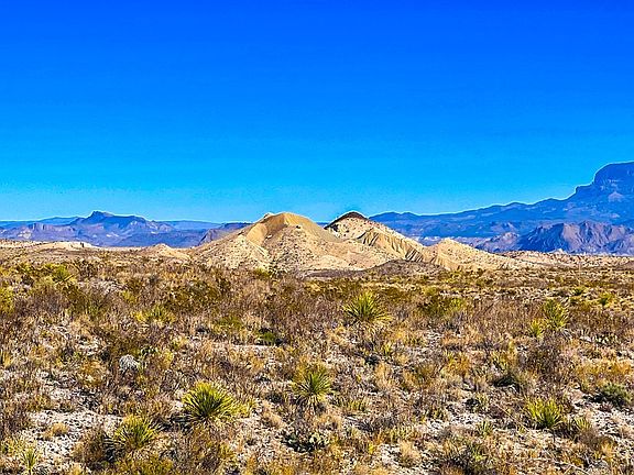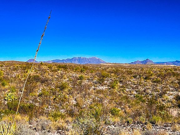 This 640 acre tract provides high elevations (up to 3400' and 3366' at California Hill), providing beautiful views of Chisos Mountains, Christmas Mountains, Mariposa Mine, Maggie Mine, numerous ruins, including the old jail and post office, and wide open skies. Canyons and arroyos are numerous, along w/flora & fauna and old mining history. The options for building where views abound are numerous. Property could easily be divided. The entry road was recently rebuilt to provide easy access without