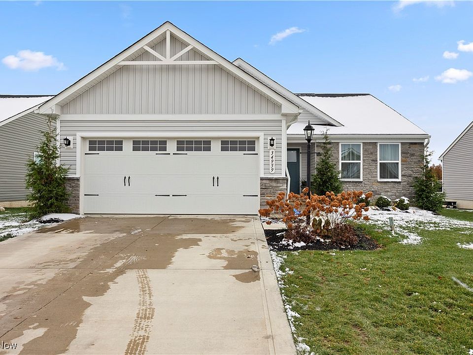 Ranch-style living with modern flair in desirable Grafton/Eaton Twp! This open-concept home features many builder upgrades, including a bright kitchen with quartz countertops, center island, and plenty of cabinet space. Easy-care LVP flooring flows through the main living areas, with cozy carpet in the bedrooms. The well-sized secondary bedrooms are serviced by a full bath, while the spacious primary suite offers a large walk-in shower, double vanity, and generous closet space. The unfinished lower level, with plumbing rough-in for a future bath, mirrors the square footage of the main floor and offers amazing potential for additional living space. Enjoy abundant natural light, recessed lighting throughout, and a covered deck that extends your living space outdoors. Maintenance-free living means more time to relax and enjoy your home. Why wait to build when this move-in-ready ranch is available now? Make your move and celebrate the holidays in your new home!