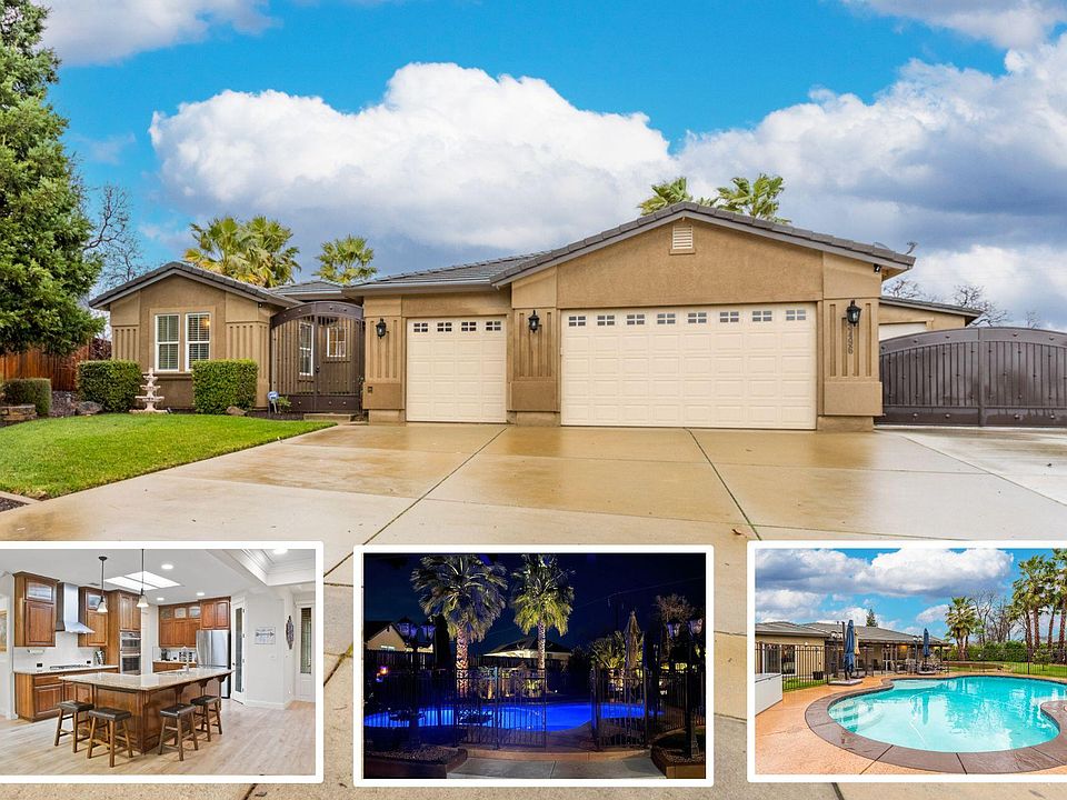 Luxurious Home with POOL & SHOP! This meticulously designed home features 3 Bedrooms and 2 full baths, offering a perfect blend of sophistication and functionality. NEW FLOORING throughout, Open Floor plan. Natural light throughout, HIGH END NEW APPLIANCES, granite countertops, and more. Relax in your spacious master suite, complete with a walk-in closet, Large shower, and an enchanting fireplace! Check out your very own backyard oasis featuring a Sparkling Gunite pool with new tile work done, accent lights, and surrounded by a security fence. Huge plus is the LARGE SHOP with a guest bedroom and full bathroom behind a beautiful privacy electric gate. This home has it ALL! Schedule your private tour to explore the countless amenities and timeless elegance that define this exceptional home.