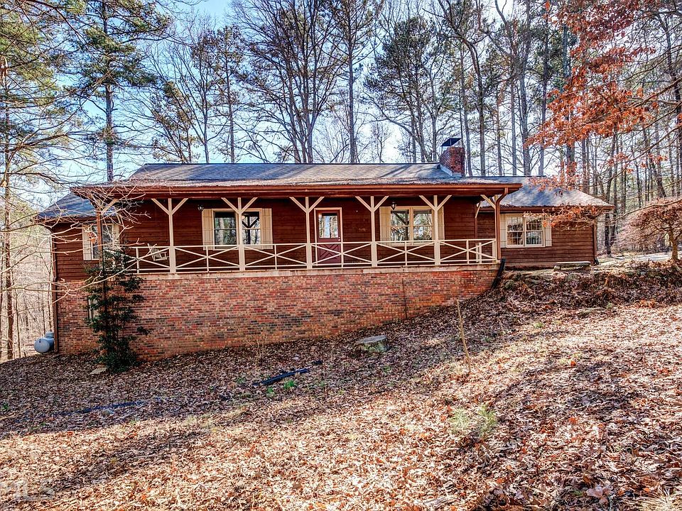 Want to live in the woods but be close to everything? This wonderful cabin is what you have dreamed of! This Ranch home on a full basement features extra large greatroom with cathedral beamed ceilings, hardwood floors, built-ins and fireplace! The large kitchen is loaded with cabinets and has a large breakfast room that leads to a sunroom where you can enjoy all the seasons! Huge Laundry/Mud Room perfect for extra storage or pantry! All the bedrooms have hardwood floors! Basement has Bedroom and Bath finished and with little effort you could complete a playroom/theater room or extra den! Lots of storage in basement! Watch the deer go by on rocking chair front porch. All of this with no HOA!