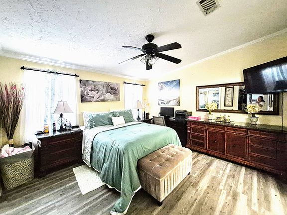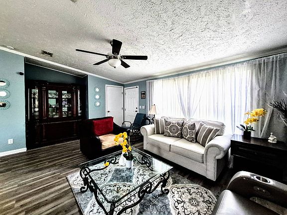 Manufactured Home on Leased Land with Lot Rent. Discover this well-maintained 3-bedroom, 2-bathroom manufactured home offering 1,393 sq. ft. of comfortable living space. Featuring an open floor plan, laminated flooring, and spacious bedrooms, this home combines style with practicality. The equipped kitchen is ready for your culinary creations, while the outdoor shed provides additional storage. Enjoy the low-maintenance lifestyle with impeccable vinyl siding and double parking space. Located in Covington Estates, an all-ages community, residents benefit from a welcoming environment with a courtyard, playground, clubhouse, and swimming pool-perfect for relaxation and family fun. Surrounded by tranquil settings yet conveniently close to theme parks, restaurants, shopping plazas, pharmacies, and more, this property offers both comfort and convenience at an affordable price. Book your appointment today!