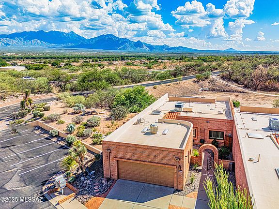Elevated Corner-Lot Townhome with Mountain Views & High-End Upgrades! Welcome to this beautifully remodeled 2-bedroom, 2-bathroom townhome with a spacious den and a bonus 200+ sqft enclosed Arizona/sunroom. Perfectly positioned on a private elevated corner lot with no neighbors behind, this home offers stunning mountain views and exceptional indoor-outdoor living. Step inside to find an open, light-filled floor plan with tile and luxury vinyl plank flooring--no carpet anywhere! The inviting living area flows into a beautifully redone kitchen featuring quartz countertops, gray cabinetry with pull-outs, and newer stainless steel appliances. Retreat to the generous primary suite, complete with a massive closet with built-in shelving, and a fully remodeled bathroom with brand-new shower and fixtures. Every detail has been thoughtfully updated, including newer roof (2022) with 7 skylights, newer HVAC, water heater & water softener (2020), new windows & flooring (2023), updated lighting & ceiling fans (2024), AND BRAND NEW stainless steel washer & dryer included. Additional highlights include an oversized insulated 2-car garage with built-in cabinetry, professional xeriscaping with desert plantings, and a private front courtyard, perfect for enjoying Arizona mornings. Located in the desirable Canoa Ridge neighborhood, you'll be just minutes from Canoa Hills Trails Park, where hiking, bird-watching, and scenic walks await. This turnkey home shines with pride of ownership! Schedule your showing today and make it yours!