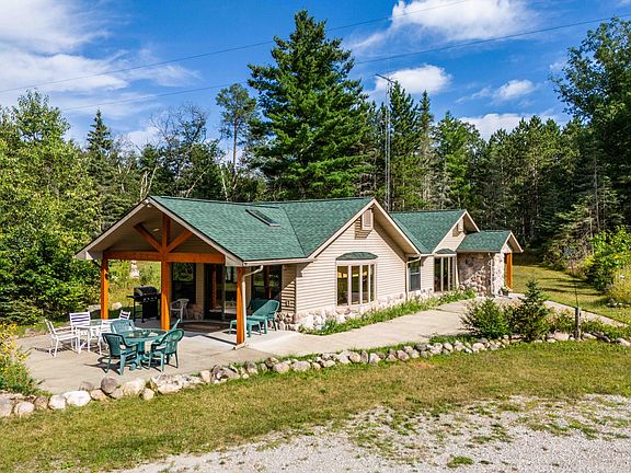 10+/- Acres, Curran area,.3-bedroom, 2-bath main house, a detached garage with 2-bed,1-bath upper level guest quarters, and an extra pole barn. The main living space is bright & open with an abundance of windows & skylights, vaulted ceilings, tongue-and-groove throughout and a timber-framed covered porch. Additional features include a standby generator, a 5'' well, and a full basement. Mostly wooded parcel with landscaped yard, mature pine trees, and various apple trees, accessed by a long limestone driveway off State HWY M-65. Being sold furnished, but items can be removed based upon the buyer's preference. Exact parcel size and/or dimensions is TBD, pending a division from the parent parcel. Survey will be provided upon completion. All information herein is deemed but is not warranted.