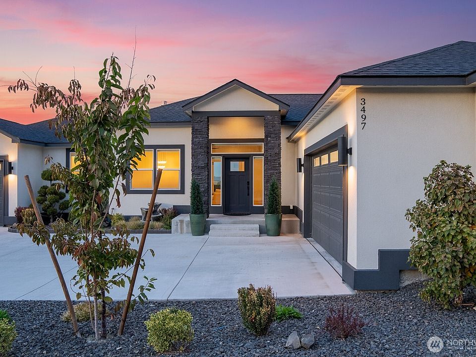 Experience refined style and everyday comfort in this 5 BD, 4 BA home with a walk-out basement and sweeping Yakima River views. The light-filled main level features open-concept living with a floor-to-ceiling tiled fireplace and a gourmet kitchen with quartz counters, large island, stainless appliances, corner pantry, and under-cabinet lighting. LVP flooring flows throughout. Dual primary suites offer flexibility for guests or multi-generational living. Enjoy smart Lutron controls, custom office, and an entertainer’s backyard with engineered retaining wall, StruXure pergola, fire pit, hardscaping, planter boxes, and hookups for hot tub or outdoor kitchen.