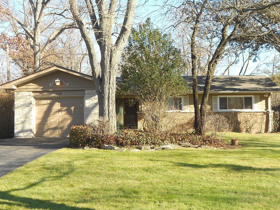 Solid brick and cedar ranch on tree-lined street in beautiful neighborhood. Three bedrooms and two full baths. Comfortable living room - dining room "L" with hardwood floors and view of the yard. Spacious galley kitchen with table space. Good sized bedrooms and nice sized master bath. Family room addition opens to patio and back yard. New roof (2023) and newer windows (2018). Large, wooded lot (77' x 265'). This home has lots of potential. Close to train and schools (but not too close). Sold As-Is.
