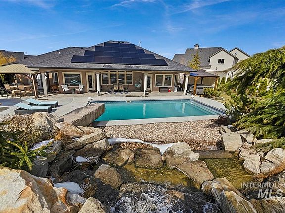 Unbelievable home in stunning Castlebury West neighborhood. You CAN have it ALL! From the open concept living, gorgeous kitchen, spacious bedrooms, entertainers lower level, custom bar, pool, hot tub, waterfall, sports court, outdoor kitchen, everything on your wish list is HERE! Owned solar panels for lower electric bills, fruit trees for your enjoyment, storage galore, plenty of space for children at play, cul de sac location, updated with the finest products and move in ready. Downstairs boasts a second living room, plumbed bar, entertainment space, theatre (easy to convert) or work out room, playhouse, 2nd laundry with W/D, 2 full baths & 3 beds. Inviting main level offers a primary suite w/patio/backyard access, 2 custom closets, 2 guest beds (one is set up to be a pool room if wanted), 1.5 guest baths, dining room/den, beautiful views of spectacular back yard and mature landscaping. This is your inner child's dream home just in time to enjoy for the summer months!