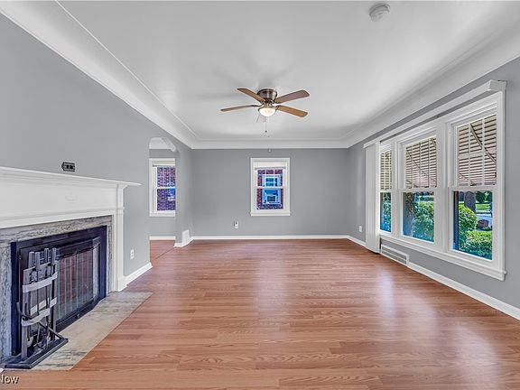 Stunning brick colonial with incredible curb appeal in the heart of Cleveland Heights! Step inside to a spacious and inviting living room, featuring built-in shelving, a cozy fireplace with mantel, and large windows that flood the space with natural light! Luxury vinyl plank flooring flows seamlessly throughout the main level, creating a warm and modern feel! Entertain effortlessly in the formal dining room, complete with built-in shelving for storage and display, or relax in the bright three-seasons room, surrounded by windows, offering the perfect space for morning coffee, evening reading, or hosting friends and family! The kitchen is functional and charming, with ample counterspace, a stove, and dishwasher, making meal prep a joy! Upstairs, three generously sized bedrooms are complemented by a full bathroom, and one bedroom features a private balcony, ideal for enjoying fresh air and peaceful views! The fully finished basement expands your living space with a second fireplace, built-in bar, separate laundry area, and a convenient half bath — an ideal space for social gatherings, relaxing, or pursuing hobbies! Additional highlights include a 2-car detached garage, central air, and easy access to major highways for commuting or exploring the area! Enjoy all that Cleveland Heights has to offer, including nearby Cedar Lee Theatre for arts and culture, Coventry Village with boutique shops and trendy restaurants, and scenic trails at Cain Park for outdoor recreation! This won’t last long! Schedule a showing to see it for yourself!