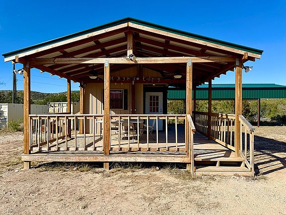 200 acres with 616sq’ cabin with large front porch, RV covered roof, and two c cans. Gated entrance leading into ranches. Electric, and a fairly new 4” solar well, with three water tanks. All black top from interstate until entrance, with only 200 yards of dirt road to get to your property. You also have phone and internet service. If you hunt in Texas you will know how much of a huge plus these three things are.