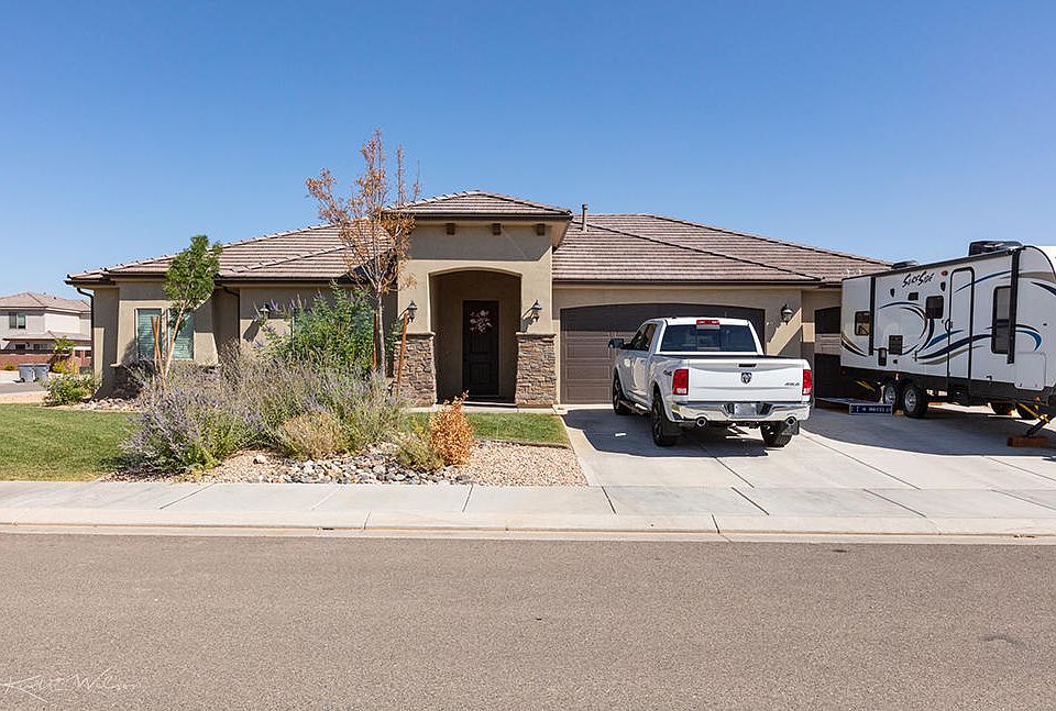 Darling 4 Bedroom Home On A Corner Lot In Deserts Edge. Quiet Neighborhood In A Great Location, Nice Open Floor Plan, Granite, Tile Floors, 9ft Ceilings, 3 Car Garage With A Storage Room And So Much More. Temporary Wall On 3rd Car Can Be Removed To Make It A 4 Car Garage.