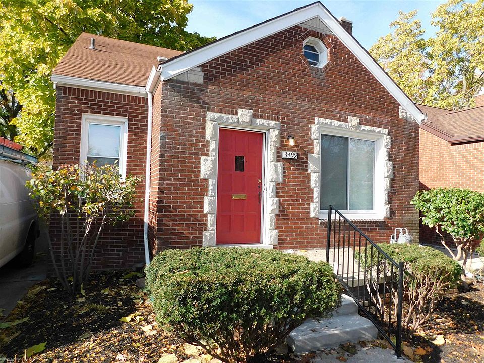 East English Village. Brick bungalow with all the features a homeowner would love! Mosiac foyer entry, hardwood floors, natural fireplace, cove ceilings and plaster walls, french door to the dining room. Re-painted throughout. Huge 2 car + garage with remote entry. Spacious yard with lush landscape and a nice wood deck off the back of the house, fenced yard. Insulation added to keep energy costs down! Upper bedroom features new carpet and large closet and cedar closet. Great location just off Mack Ave. Updated bathroom with new toilet, vanity and scald guard shower faucet. Immediate occupancy. Newer concrete walkway. Comcast camera security system to be included. 2nd toilet in basement.