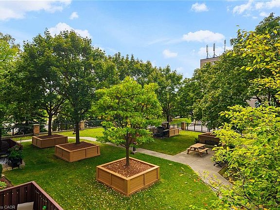 ***NO CONDO FEES FOR SIX MONTHS...Vendor offering maintenance fees paid up front.*** Discover the perfect mix of comfort and convenience in this beautifully maintained 1-bedroom, 1-bath condo in the sought-after Walker’s Square community. The open layout showcases a bright and spacious living area and a smartly designed eat-in kitchen with abundant white cabinetry and stainless-steel appliances. The generously sized primary bedroom pairs perfectly with the convenience of in-suite laundry and 4-piece bathroom. Step onto your private balcony to unwind amidst mature trees and meticulously landscaped grounds—a tranquil park-like backdrop that offers both privacy and natural beauty. The building is smoke-free and impeccably cared for, providing a peaceful, worry-free lifestyle. Enjoy an exclusive underground parking and the added bonus of a locker space conveniently located on the same level as the suite. Exceptional on-site amenities include a party room, fitness centre, car wash station, and a community patio with BBQ area—ideal for entertaining or relaxing with neighbours. All this just steps from shopping, transit and everyday essentials, with quick access to the 403, QEW and GO Station. Affordable, convenient living in a truly desirable location—your new home awaits! Some photos have been virtually staged.