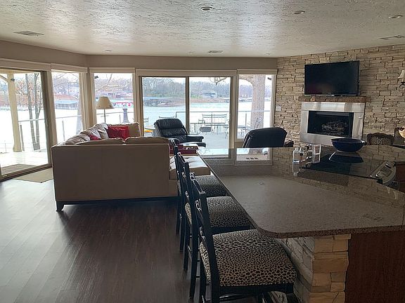 Stucco and concrete ranch style 2 bdrm, 2 bath open living area with great view. Completely remodeled inside and out! Treks type deck w/ stainless steel railing and cables for great view of the protected cove. Gentle slope to the water with 2 docks. Boat slip w/hydro hoist and Wet steps boarding step onto the boat w/Branam automatic boat cover. Large covered boat dock attached w/shade and sun and new Wet Steps ladder for easy entry and exit to and from the lake. The spider/bug mister around the deck and boat docks help keep bugs and mosquitos away. Locking storage on the dock and video cameras around the property.
