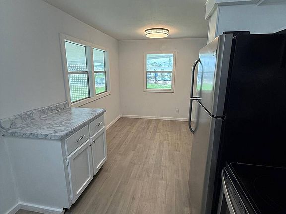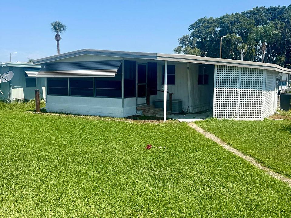 This fully refurbished manufactured home on a premium lot in Lake Point, Tavares features 2 bedrooms and 2 full baths, an air conditioned Florida room overlooking the community pool and clubhouse, all new flooring, energy efficient lights/fans and bathroom fixtures. This home is just steps from the pool and clubhouse and a short walk to the community marina and park on beautiful Lake Eustis allowing you to easily enjoy all the amenities and activities in this vibrant, affordable, low-maintenance active waterfront community. Outside, there is a carport for parking, a ramp for easy access and shed for extra storage. The home boasts 2 spacious bedrooms, the primary has an en suite full bath with shower and a walk-in closet and the 2nd bedroom has a built-in dresser and 2 closets. The large fully equipped kitchen includes stainless steel appliances and a large dining area. The living room and an air-conditioned Florida room perfect for entertaining and enjoying the beautiful view and Florida sunset. All work has been completed except paint which will allow the purchaser to pick their own colors. Highlights of work completed: • Electrical is to code and verified by Mr. Sparky. All plugs within 6 feet of water were converted to GFCI plugs. Panel is up to date and the main internal wiring is 20amp wiring or greater. • Central Air: Has a 3 ton unit. Fan motor and capacitor were replaced by Lucas Air and system was checked for leaks and cleaned as of May 2025. • Plumbing in Master suite was updated and expanded to add the walk in shower. All plumbing and Permits were done by Ross Plumbing and approved by the City of Tavares. Both Bathrooms have new dual flush 1.6 GPF technology toilets installed • Interior walls, ceilings and insulation were removed and replaced with new insulation and finished with 3/8ths drywall. • All ceiling lighting are updated to LED for long lasting energy efficient lighting. • New bathroom LED exhaust fans installed in both bathrooms. • Continuous Laminate flooring with secondary under laminate installed throughout the entire house to help with insulation, reduce allergens, and humidity. • Roof was recoated with Elastomeric Reflective Roof Coating for a waterproof seal and cooling. Entire exterior has been recaulked and sealed. Lot Rent for this Premium interior 50x73 lot next to the pool and club house is $775. Seller will pay first months lot rent. Living Room - 14'6" x 13'7" Kitchen - 10' x 9" Florida Room - 16' x 9'9" Dining - 7'3" x 6'5" Primary Bedroom - 11'4" x 13'7" 2nd Bedroom - 10'6" x 10'6" Walk In closet - 6' x 6'