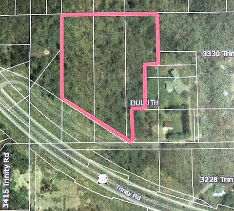Conveniently located near Miller Hill area shops, restaurants, Lake Superior College and Enger Park, this 5.8 acre lot is zoned for single-family or multi-family dwellings with over 400 ft of frontage on the city road with water, sewer, and gas in front of the property in the street. Seller choosing to sell of all of the parcels in entirety, but buyer could opt to subdivide later. The property is located above Trinity on a frontage road to Trinity, not Trinity itself. Buyer to verify plans with the city.