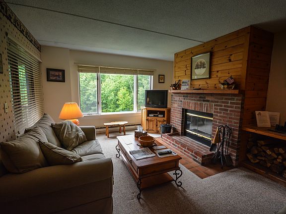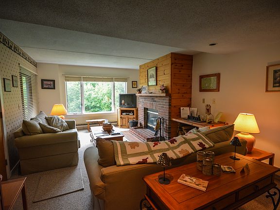 Charming 2 bedroom, 2 bath Snowtree unit with beautiful direct views of Mount Snow ski area, fireworks displays, groomers at night, and the ski conditions. You cannot beat a location like this just up from the base area. Open concept living and dining areas, wood burning fireplace, recently updated tile and carpeting, updated furnishings, covered deck overlooking the view, and great space to stretch after a long day of skiing. The condo association has replaced the exterior siding and windows. The unit features a ski locker for gear storage, and the association amenities include outdoor pool, indoor hot tub and cardio equipment, shuttle service to and from the mountain, and maintenance, so that you can enjoy downtime and not upkeep.