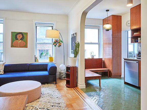 Schedule Showings BY APPOINTMENT ONLY Please call Daniel Karatzas, IN ADVANCE, for a precise time. The apartment and renovation you have been searching for! Noted architect David Bench of the design firm INCA has transformed a generously-sized prewar one-bedroom apartment into a modern and efficient two bedroom. The entry foyer, large enough for a desk/workstation, has two closets along with a series of four custom-made cherry-wood built-ins. The built-ins extend for twelve feet, and can hold a variety of household and personal items. And at the top of each is a shelf perfect for books or decorative objects. To the left is the large living room with two windows facing east. The living room is open to the fabulous eat-in kitchen that has the same tasteful custom-made cherry-wood cabinetry as the foyer. Beautiful Caeserstone countertops frame the Blanco granite sink, Fisher & Paykel refrigerator, Bosch dishwasher and ZLINE stove with Zephyr stainless steel hood. An additional cherry-wood built-in and seating are adjacent to the kitchen window. The handmade green glazed-brick floor tiles are by Fireclay. One of the two bedrooms is accessible from the kitchen through a pocket door. All conventional doors in the apartment were converted to Shaker-style wood pocket doors to optimize the available space. To the right of the foyer is the beautifully renovated bathroom. You will find green Mexican cement tiles by Rustico, a shower alcove with hand-made Moroccan terracotta tile from Mosaic House, Duravit sink, Toto cast iron deep soaking tub brass fixtures, Robern mirrored medicine cabinet and an Eames towel rack. Then through a pocket door we enter a bedroom with a south-facing window. The second bedroom can be entered from both the first bedroom and the kitchen, and has two exposures - east and south. As in the other rooms, the finishes and the high quality of the work is obvious. New electrical panel and wiring in kitchen, bedrooms, and bathroom, along with Flos lighting fixtures. Everything comes together to create a cool, contemporary feel perfect for modern living and designed with flexibility in mind. Jac Towers is a well maintained cooperative just a few blocks from the Roosevelt Avenue/74th Street train and bus station. There are laundry and storage facilities in the basement. Live-in super. The building is pet friendly and allows subletting. 20% down and board approval are required. Close to shopping, restaurants, and all Jackson Heights has to offer.