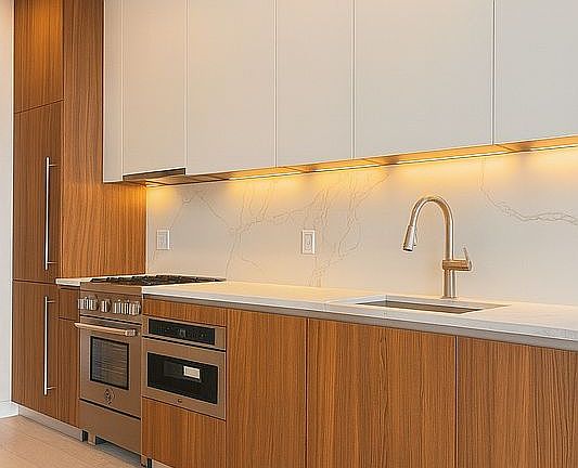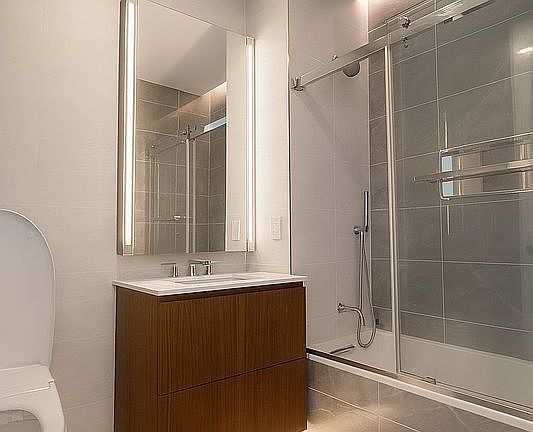 The Residence offers a charming urban retreat. The kitchen showcases sleek features, including Calacatta Quartz countertops and exquisite Italian accents, promising culinary excellence. With ample outdoor space, The residence provides a tranquil escape for relaxation. The integration of the Latch Smart Lock System and Wi-Fi-enabled appliances enhances modern living with effortless convenience. The residence boasts soaring high ceilings, accentuating its spacious and luxurious ambiance. In the bathroom, Calacatta matte paorcelain tiles, custom walnut wood veneer vanities topped with Quartz marble, and programmable radiant heat floors create a tranquil retreat.
