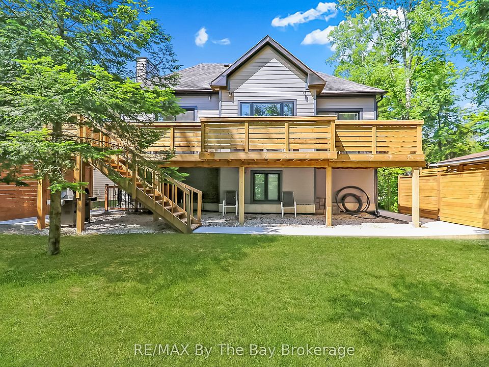 Looking for the perfect mix of location and quality? This stunning 6-bedroom, 4.5-bathroom home gives you both! North of Mosley Street, you can walk to the beach, shops, and restaurants in only minutes. Imagine living steps from the worlds longest freshwater beach, where every day feels like a getaway. Built by a trusted Toronto builder, this home is filled with high-end finishes. Inside, you'll be greeted by 10-foot ceilings and oversized windows that fill the space with natural light. The main level features beautiful imported tile floors and custom hardwood upstairs. Open kitchen, dining, and family room lead to a large walk-out deck that spans the width of the house, perfect for gatherings.The design also includes a full in-law suite with its own entry, kitchen and living space; great for family or as a rental. This lower level has 3 bedrooms, 2 full bathrooms and its own electrical panel, giving you plenty of options. Outside, the home stands out with classic Hardie board siding and stone accents. The garage is oversized with a 10-foot door and 18-foot interior height, offering space for cars, storage, or hobbies.Set on a quiet street, you'll enjoy peace and privacy, plus a mature priate yard. At the same time, it is only a short walk to sandy shores, stores and local dining. Whether you're looking for a family home, an income opportunity or a beachside retreat, this property has it all.