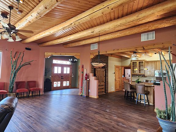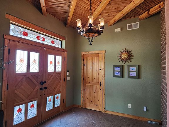 Huge over 3,100 square foot, 3 bedroom, 3 bathroom home including guest wing with a built in kitchen, with an office, horseshoe shaped home built around a private courtyard with a waterfall feature and garden built right up against the mountains. Incredible views, huge master bedroom suite, hickory cabinets, granite countertops, comes with a built-in electric range oven, microwave, refrigerator, stackable washer/dryer, hot tub that's only 1 year old that cost $17,000. Has a 4 car garage, gun room/workshop, huge attic/storage area over the garage. Has viga beamed ceilings, kiva fireplace, all ceramic tile flooring throughout, a solar system that cost $62,000 and lots more! View Virtual Tour: https://tour.pivo.app/view/3394dd20-4abe-4a1f-988a-53ce765fe17b