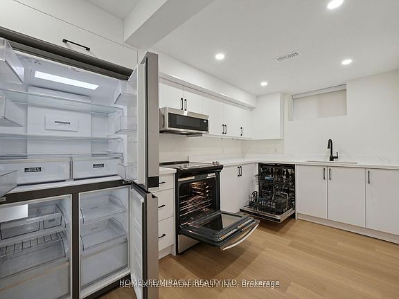 Location! Location! Location! Bright and Newly finished spacious 2-bedroom basement apartment available for rent in the desirable Etobicoke East Mall area. This beautifully maintained unit features a spacious layout with a modern kitchen, a comfortable living area, two generously sized bedrooms and a full 3-piece bathroom. Enjoy the convenience of private in-suite laundry and a separate entrance that offers added privacy. Perfect for a couple or small family, this home is located in a quiet, family-friendly neighborhood close to public transit, schools, parks, shopping centers, major highways (401, 427, Gardiner). Don't miss the opportunity to live in a clean, well-kept space with everything you need close by. Tenant responsible for 30% of utilities. and their own internet., Tenants are responsible for snow removal on their side. Street Parking Available.