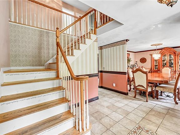 Splendid 2 story colonial surrounded by lush manicured gardens awaiting its new owners to move right in & revel in this magnificent home! Long paved driveway leading you to the glamorous interior. Upon entry, a beautifully tiled foyer opens to the elegant formal dining room. Tasty eat-in kitchen with cherry wood cabinetry includes sparkling granite countertops, ideal Island, and appliances. Easy flow from kitchen to the sun-filled living area with fireplace. Cozy family room also located on entry-level, the perfect lounging spot to spent some family time plus an additional fireplace. Hardwood flooring throughout and steps leading you to the upper level. Luxurious master bedroom featuring a stunning master bath, Jacuzzi, & walk-in closet. Get ready for a great night's sleep in these 4 gorgeous bedrooms complete with 2 full baths, loads of sunlight, and high vaulted ceilings. Glass doors from the kitchen opens to the rear deck overlooking spectacular views. Be entertained by this Blissful outdoor retreat! Huge refreshing in-ground pool, leisure grounds, tiled patio, bushes, and brand new white fence worth close to 20k! The skies the limit to all summer fun you could possibly have on this property! The market is hot! Send in your highest and best before its gone!