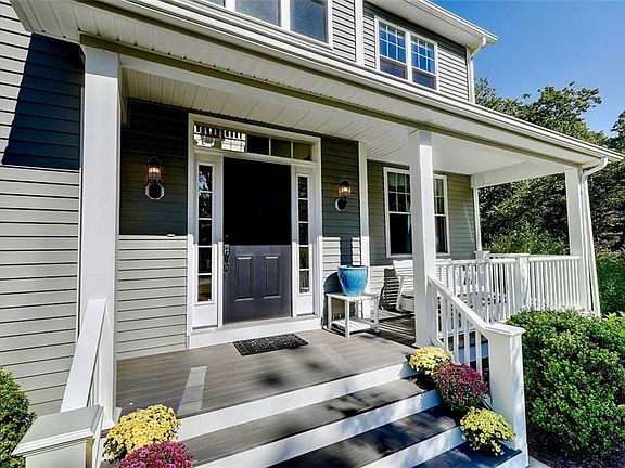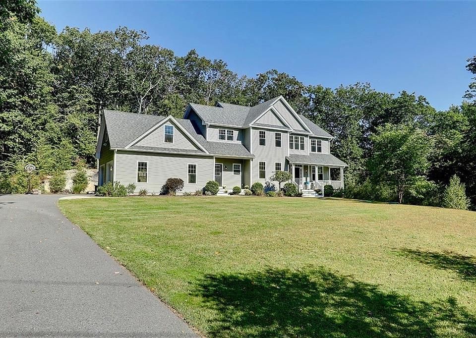 This custom-built 4-bed, 3-bath colonial is set on almost 4 acres of wooded land in beautiful White Oak Estates. The first floor boasts a stunning open-concept eat/live space: the kitchen features honed granite counters, an oversized island with ample counter seating, and a built-in desk nook -- and opens onto a living room with a gas fireplace, and a large dining room with glass sliders opening onto a rear patio. Close the French doors of the adjacent family room to create the perfect home theater or a quiet reading space. The first floor also has a lovely den with built-in shelving, a home office, and a full bathroom. Additionally, the large mud room has plenty of built-ins for bags, books, and coats, and has entries from both a front porch and from the 2-car attached garage. Upstairs, find 3 generous bedrooms, a common bathroom with double sinks and laundry, and ample closet space. Finally, the master suite features a walk-in closet, a separate sitting area, and a spacious master bath with a jacuzzi, shower, and double sinks. Storage or expansion is easy with attic space above the garage, and a full walk-out basement. Easy access to highways and interstates means that this tranquil gem is only 20 minutes from Downtown Providence, and less than 10 minutes from Smithfield Commons and Route 295.