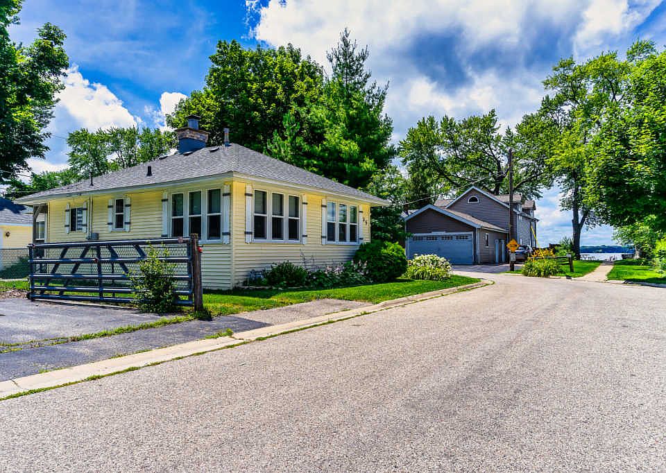 Your charming lake home is now here! Enjoy this water view home year round. Has Community Dock and a view of Pistakee Lake from the living room window. Spacious living room has a large fireplace for the winter months. Updated kitchen and adorable updated bathroom with rain shower head will wow! 1 car garage stall, with 1 car workshop in garage. An additional adorable garden shed/workshop is a fun bonus and has electric, could be an art studio or she shed. Near all major conveniences in Fox Lake.