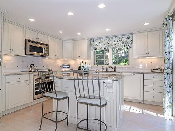 Classic slate roof & beautifully maintained Colonial in Wellesley's Cliff Estates. Lovely landscaped yard including pond and waterfall. Gracious front foyer, and a den/office with built ins. Dining room with hand painted walls and French Doors overlooking patio area offering a nice flow for entertaining. Elegant front to back, fireplaced living room that opens to a Cathedral ceiling sunroom that sings of sunshine. White kitchen with granite counters, Wolfe stove, Bosch dishwasher and Sub Zero Refrigerator, step down to cozy eating area with back stairway up to second floor. Second floor laundry and a walk up bonus room on third floor plus attic storage. Don't miss seeing this home!