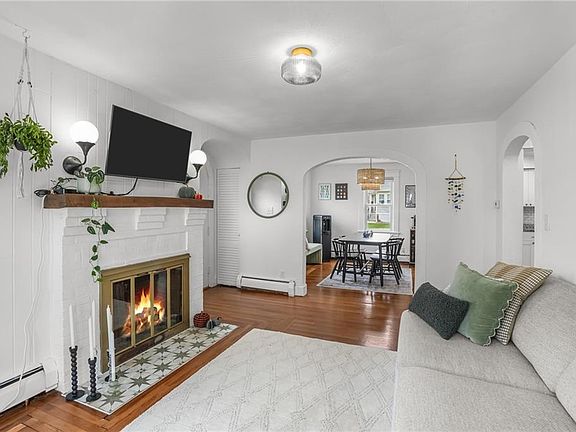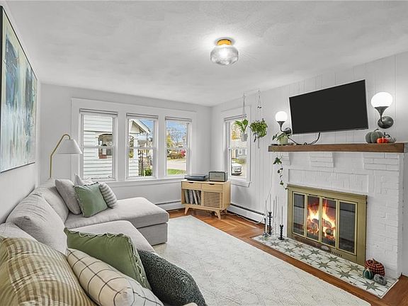 Welcome to 35 Barney Street in sought-after Rumford! This sun-filled Cape beautifully blends classic New England charm with modern updates, creating a space that’s both timeless and move-in ready. The inviting first floor features a spacious living room with a refreshed fireplace and an updated kitchen with granite countertops, stainless-steel appliances, and recessed lighting. A bright dining area, coveted first-floor bedroom, and recently renovated half bath complete the main level. Newly refinished hardwood floors and stylish light fixtures enhance the warmth and appeal of first-floor living. Upstairs, discover a gorgeous, fully renovated full bath with stylish finishes and a charming barn door. The second sun-filled bedroom boasts hardwoods and ample eave storage, while the expansive primary offers two closets and sweet backyard views. The lower level provides a versatile finished space—perfect for a home office, gym, or family room—along with a laundry area, abundant storage, and egress via a new bulkhead. Recent improvements include eight new windows, updated electrical, RISE energy consult, new exterior garage door, exterior window trim, a re-bricked patio, and new fireplace tile. Outside, enjoy a private, fenced backyard with an inviting patio, one-car garage, and generous off-street parking—all within a beloved neighborhood close to schools, parks, and local favorites like Avenue N and Seven Stars. Move right in and start your next chapter at this charmer in Rumford!