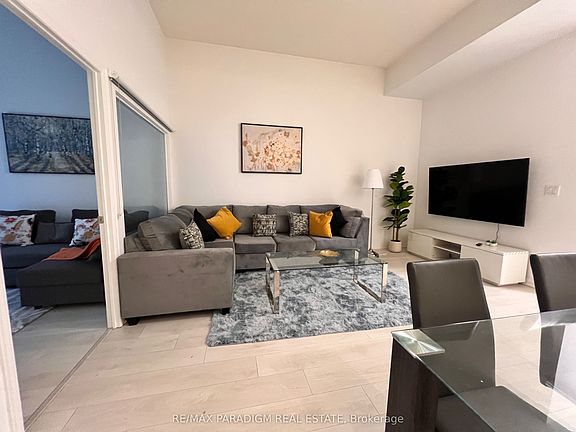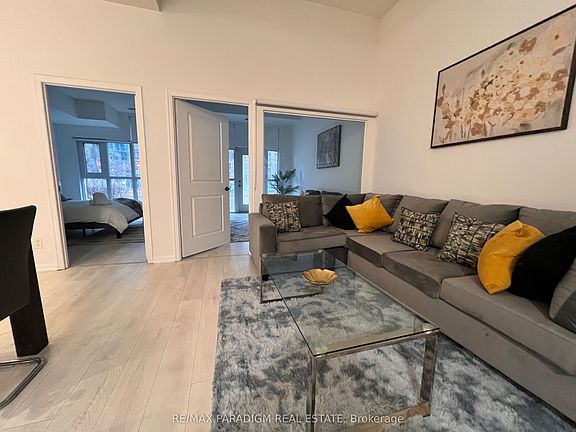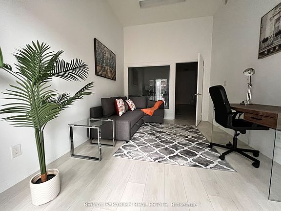 **FULLY FURNISHED** This Immaculately Furnished Executive Condo Is Available For Lease (Short Term - Monthly Available) Street Level Suite W/ 10 High Ceilings, Extra-Large Open Living Room & Spacious Bedroom W/ Floor-To-Ceiling Windows. Separate Den W/ Walkout To Patio, Ideal As Home Office Or 2nd Bedroom. Modern Kitchen W/ Granite Counters, S/S Appliances. Over 700 Sq Ft Of Functional Living Space + Full Patio. Includes Furniture, Decor, Linens, Appliances & 65 Smart TV.