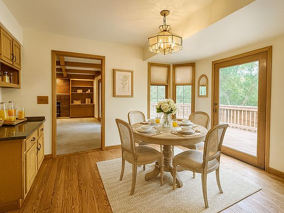 This luxurious home includes hardwood floors, family room with gas fireplace and formal living and dining room. Wet bar passes through kitchen which features granite slab countertops, island and newer appliances. Master bedroom provides a retreat area with gas fireplace, attached master bath w/dual vanity and jetted tub and huge walk-in closet! Professionally finished basement has bedroom, 3/4 bath and large rec room w/surround sound and storage. Private and spacious lot includes two decks & beautiful natural surroundings. Additional amenities include washer/dryer hookups, humidifier and A/C. Close to parks, shopping, schools and more! *Photos have been virtually staged*