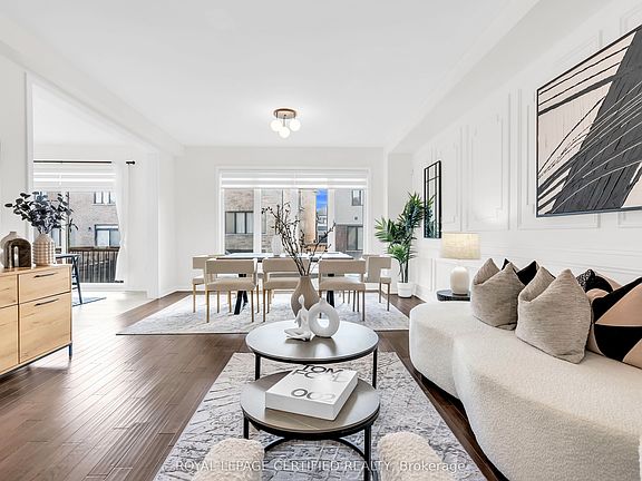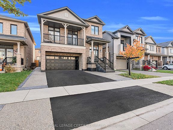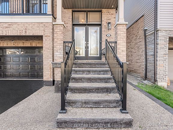 Welcome to this beautifully designed 4+2 bedroom, 4-bathroom detached home featuring a 2-car garage and offering over 3,700 sq. ft. of luxury living space. Every inch of this home has been thoughtfully upgraded with timeless finishes and modern comforts.Step inside to find 9-ft ceilings on the main level, elegant wainscoting details, and a combined living and dining room perfect for entertaining. The family room is an entertainer's dream - featuring soaring 15 ft ceilings, custom built-in shelving, and a floor-to-ceiling gas fireplace, with a walk-out to a private front balcony.The refinished eat-in kitchen is a chef's delight, showcasing top-of-the-line KitchenAid stainless steel appliances, including a wall oven and built-in microwave, stunning quartz countertops, and a large pantry wall. The breakfast area offers a seamless walk-out to your private backyard retreat, upgraded with aggregate stonework - ideal for outdoor gatherings.Upstairs, you'll find four spacious bedrooms, including a luxurious primary suite featuring a spa-inspired ensuite with a double sink vanity and a custom-designed walk-in closet.The fully finished lower level adds incredible versatility, offering two additional bedrooms, a full bathroom, and a kitchenette - perfect for extended family or guests.Located just minutes from local parks, scenic escarpment trails, waterfalls, major highways, and all amenities, this home perfectly blends luxury, comfort, and convenience. Extras: Aggregate Concrete Stone in front and backyard, S/S Fridge, Gas Stove, B/I Dishwasher, Wall Oven & Microwave, Hood Fan, And Front Load Washer/Dryer. Elfs & Window Coverings. Custom Shelving in Great Room, Fireplace, Custom Closets. Fantastic Location! Close To Schools, Community Centre, Library, Hwy 403.