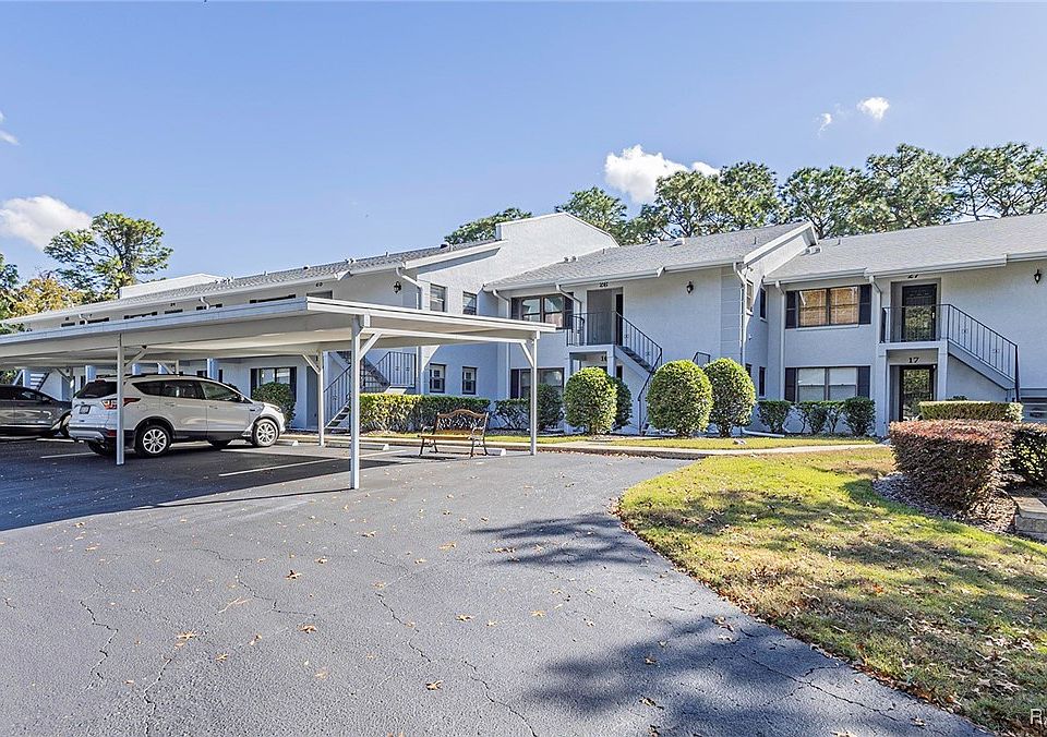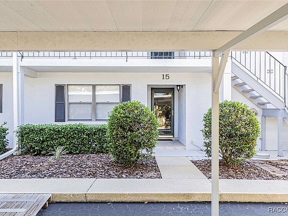 The primary bedroom is spacious and relaxing, featuring a generous en-suite layout with double sinks, a separate shower, a tub, and a water closet. The guest bathroom, conveniently located off the hallway, includes a shower/tub combo. Sliding glass doors in both the living room and primary bedroom lead to a large, glass-enclosed Florida room overlooking a serene view of the Sugarmill Woods golf course—wonderful for your morning coffee or evening relaxation. Additional features include a new 2025 AC, new carpeting, new dishwasher, sink faucet. new washer, and light fixtures. Home also has an assigned covered parking, and a community grilling area.