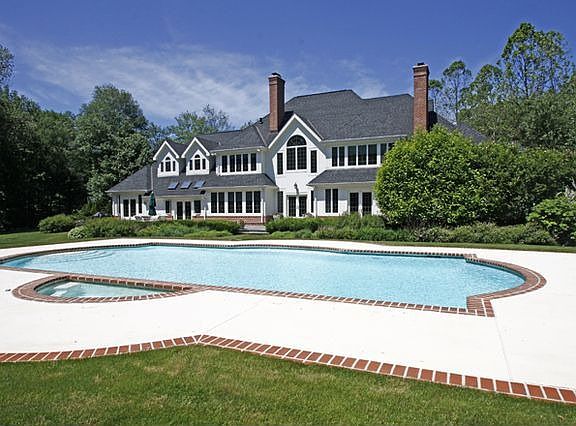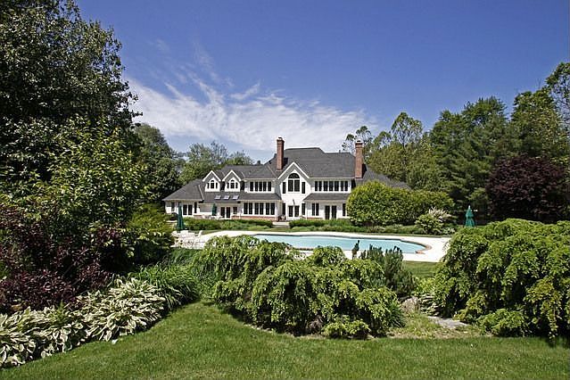 Nestled in a park like setting on 2.14 acres, this expertly appointed home offers the utmost privacy.The 7BR home has been improved with a myriad of custom appointments including built in cabinetry, lustrous marble and hard wood flrs & updated baths.Chef's kitchen, 1st fl Mstr suite w/sitting room and fpl, window wrapped family room w/french drs lead to back deck.4 br's w/ensuite bths and sitting area complete 2nd fl.Heated pool, garden lvl rec rm, excercise rm w/sauna make this home so unique.