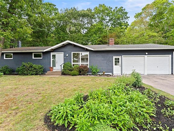 Charming 3 bed, 2 bath ranch in desirable Narragansett with deeded water access to Forest Lakes Association beach. Set on a private, wooded 14,462 SF double lot, this 1,428 SF home offers one-level living just a short walk to the water. Enjoy the sunny front living room with oversized window and fireplace, or relax in the cozy knotty pine den featuring cathedral ceiling, skylights, and sliders to a spacious back deck in a beautifully serene setting—ideal for entertaining or quiet mornings. The eat-in kitchen connects the home’s living spaces and provides easy access to the outdoors. The primary bedroom includes an en-suite bath. One of the bedrooms includes plumbing hookups for laundry. Bedrooms and hallway include original hardwood floors that can be sanded and brought back to beauty. Kitchen, living and den floors have all been replaced with wood laminate flooring. This home also features a full unfinished basement, large 2-car garage, town water, and town sewer—ready for updates or move-in enjoyment. Let your imagination be your guide with the bonus “she-shed” art studio, office, camp out, work out room etc. Surrounded by trees in a peaceful setting, with walkable beach access and close to all Narragansett has to offer, this home is a gem. Whether you're looking for a year-round residence or a seasonal getaway, enjoy the coastal lifestyle with space, convenience, and character. Don't miss this opportunity to own a slice of RI’s shoreline charm!