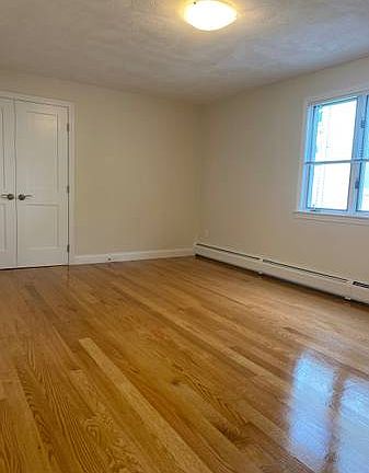 - Newly renovated - Kitchen features gas stove, dishwasher, garbage disposal, and large pantry closet - Hardwood flooring throughout - 1 Bathroom - Bedrooms are large and of similar size (good for roommate situation) - Large closets in each bedroom - Built in AC in living room - Parking for 2 cars off street - 0.4 miles to Newton Corner express bus stop NO UTILITIES INCLUDED - Oil Heat (baseboard forced hot water) - Gas cooking - Washer/dryer provided by landlord *Lease will be a Tenancy At Will with 30-day notice to quit* - No pets allowed - No smoking *Landlord will require all applicants to provide proof of income and a full Experian credit report as part of application* *Landlord will require first month's rent and 1-month security deposit* Lease will be a tenancy at will with 30-day notice to quit. Landlord pays water/sewer. All other separately metered utilities to be paid by tenant. No pets. No smoking.