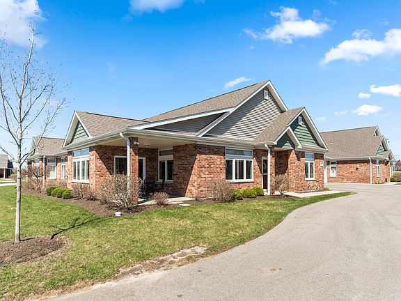 This is an all brick,1810 sq.ft., pristine, move-in ready condo in Old Mill Park, 55+ condo community built by Brian Grainger, with beautiful mill work throughout and wainscotting in dining area and sunroom. There are 2 full baths and 2-3 bedrooms. (The office may be used as a bedroom if desired.) The main bathroom has a 9'6" x 4' no-step, ceramic shower. The guest bathroom has a tub/shower. The custom kitchen has many marvelous upscale custom Brakur cabinets with beautiful quartz countertops, large island with overhang that can seat 4 people, and stainless appliances. You will enjoy the 200' botanical garden view with lovely seasonal flowers, a gazebo and a fountain. You will enjoy the garden view from your sunroom, covered patio, main bedroom and living room. The covered patio can be made into a screened patio or even a 3 season if desired. The 2 car garage has a large storage room and the garage door is 8' high. The 6500 sq. ft. stunning brick clubhouse which will be finished May, 15,2025 and even has an indoor pickle ball court.
